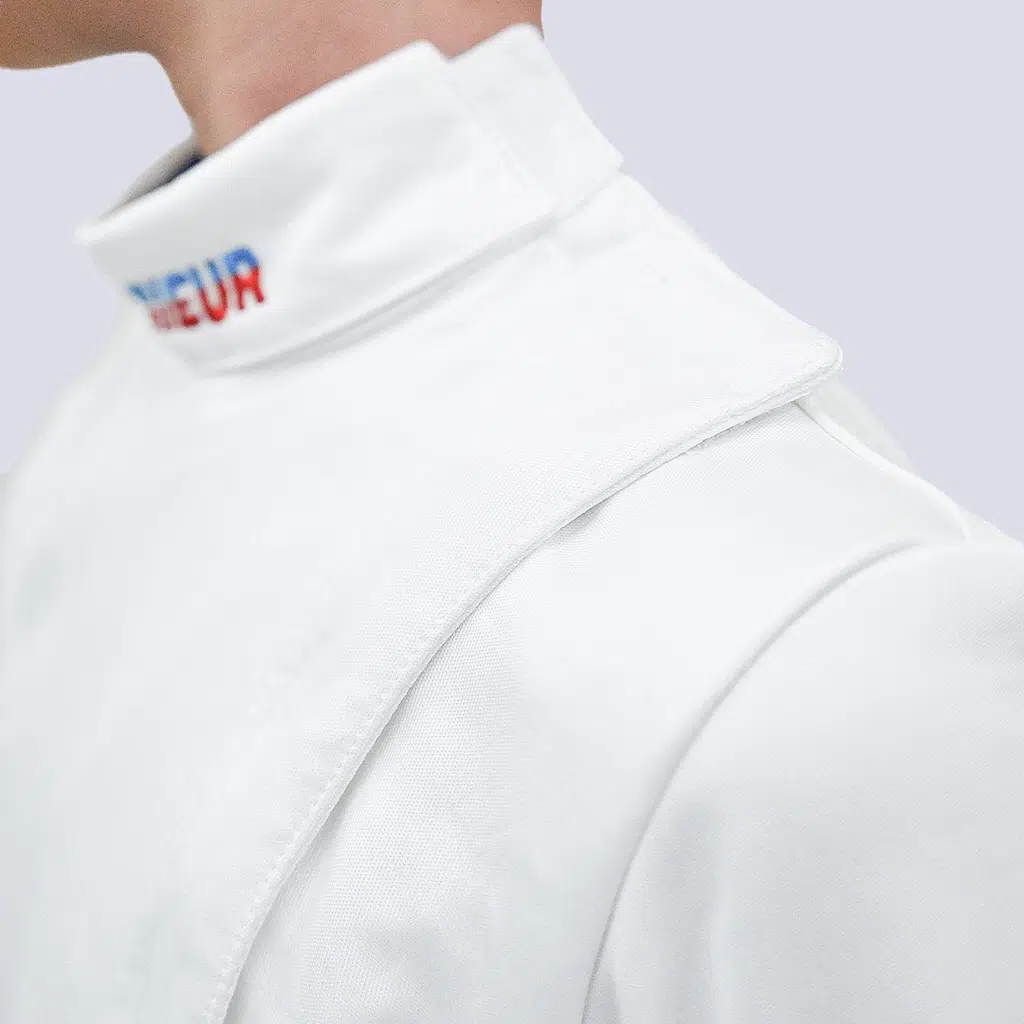 Prieur FIE 800N Children’s Fencing Jacket Super Light is for all 3 Weapons, certified by the International Fencing Federation (FIE), offers top-tier protection and comfort. Designed by a Parisian stylist and handmade in Burgundy, it is 50% lighter than standard 800N jackets, featuring Dyneema® fibers for unmatched durability and flexibility.